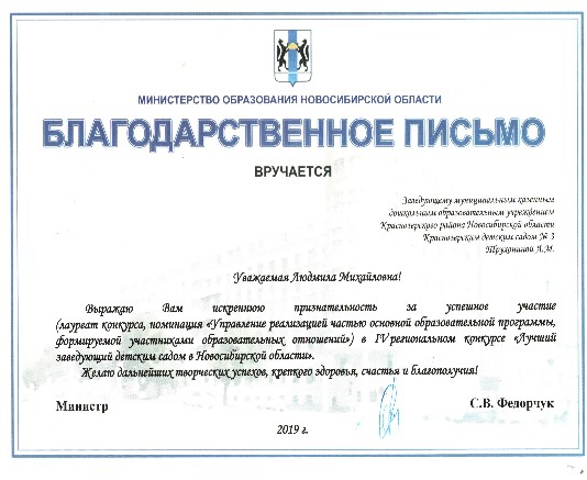 - Августовская конференция работников образования Краснозерского района «Образование Краснозерского района: от региональных целей к муниципальным». Выступление заведующей Трухониной Л.М. с докладом по теме «Создание развивающей предметно - пространственной среды как условие для всестороннего развития ребенка в период пребывания в дошкольной образовательной организации»